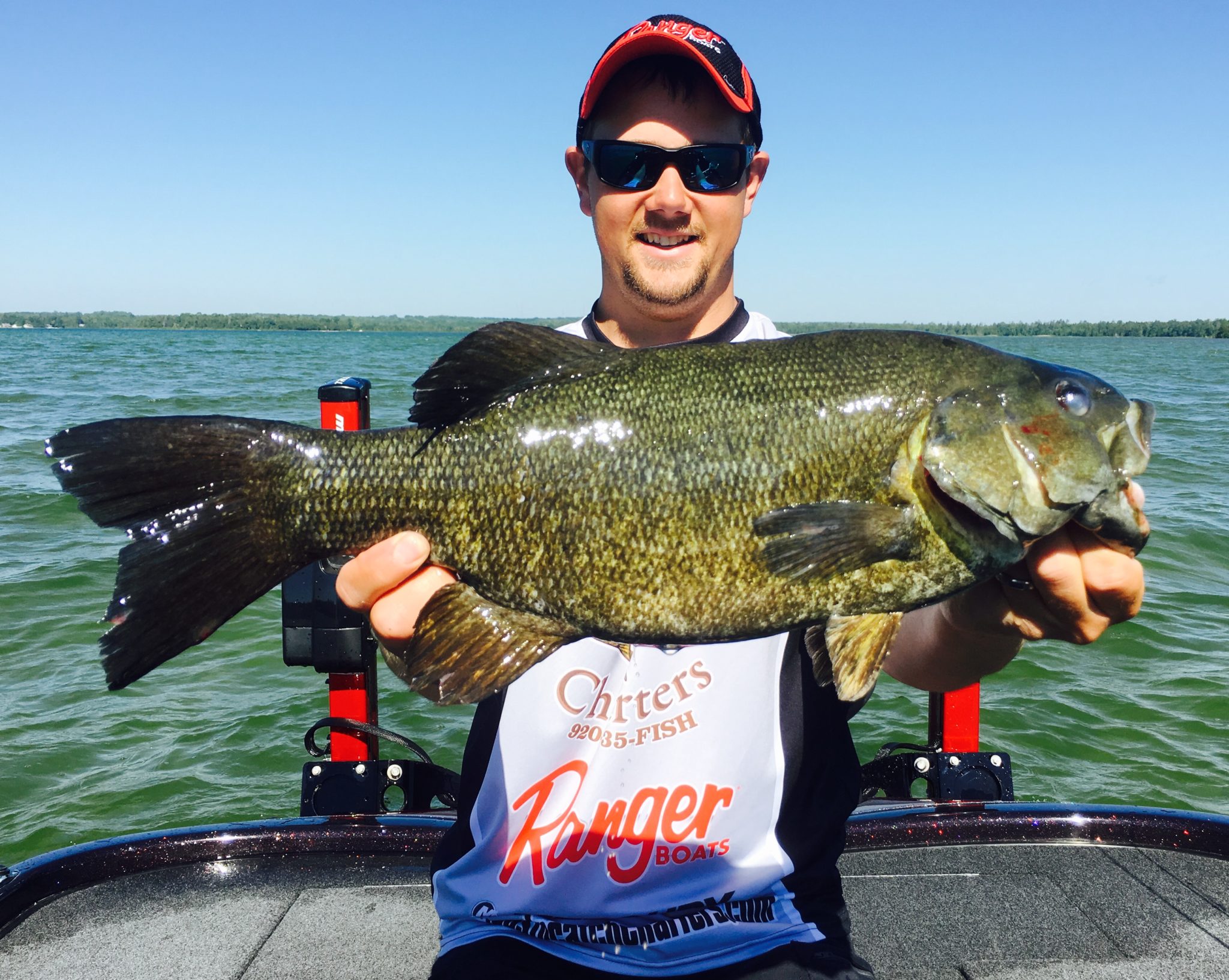 Capt. Jimmy and Haley with a Giant Door County Bass